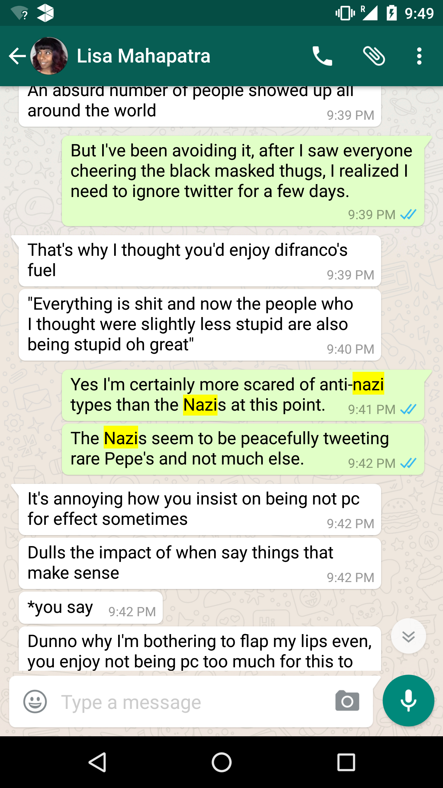 [@lisamahapatra](https://twitter.com/lisamahapatra) argued that maybe Spencer deserved to get punched, maybe he beat up some people or set their house on fire, or something like that.